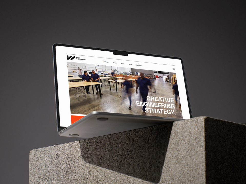 West Engineering wanted a sharper visual presence, so we developed an industrial-inspired identity built around bold shapes, clean type, and a modern orange and black palette.